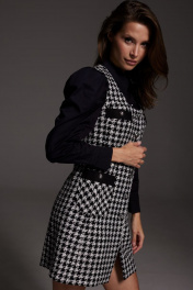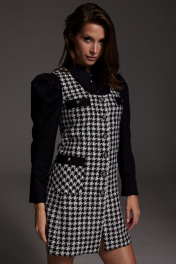 Сарафан женский из текстиля с накладными карманами демисезон DAVA 130 черный+серый+молочный