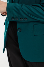Жакет женский свободного силуэта , выполненный из костюмной ткани высокого качества . Жакет с центральной застежкой , рукав втачной двухшовный , внизу рукава шлица. Воротник стояче - отложной с отворотами лацканов . По переду жакета также функциональные карманы с клапанами . Жакет на подкладке.