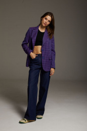 Жакет женский полуприлегающего силуэта , выполненный из костюмной ткани высокого качества . Жакет с центральной застежкой , рукав втачной двухшовный , внизу рукава шлица. Воротник стояче - отложной с отворотами лацканов . По переду жакета также функциональные карманы с клапанами . Жакет на подкладке.