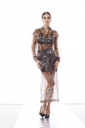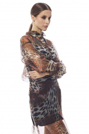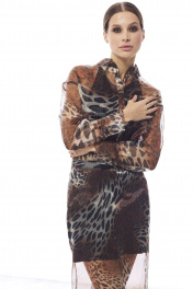 Элегантный комплект из блузы и юбки из органзы DAVA 2223 коричневый