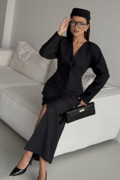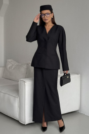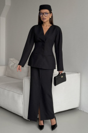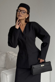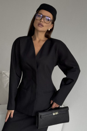 Жакет женский приталеннго Ф-силуэта , выполнен из костюмной ткани . Застежка потайная на петли и пуговицы . Рукав цельновыкроеннный двухшовный.