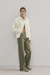 Брюки хлопковые свободного силуэта . Выполнены из качественного хлопка средней плотности , который прекрасно держит форму. Верх брюк обаботан притачным поясом , застежка в виде молнии , по переду брюк функциональные боковые карманы . Сзади - кокетка и фигурные накладные карманы в верхней части .