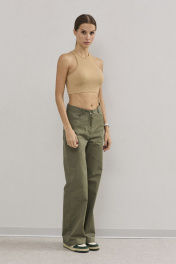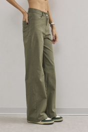 Хлопковые свободные брюки из текстиля с функциональными карманами DAVA 5187 хаки