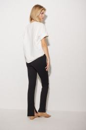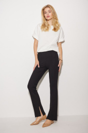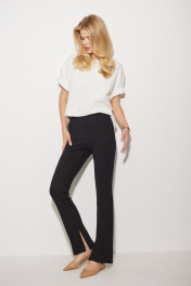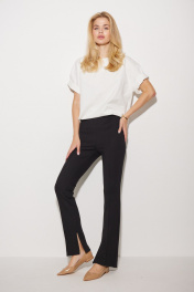 Плотные, эластичные брюки, облегающие сверху и слегка расширенные книзу, снизу небольшой разрез, который застегивается на потайную молнию