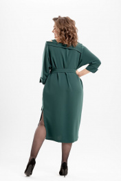 Платье свободного покроя, слегка зауженное к низу. Вырез горловины асимметричной формы. Рукава втачные, по низу с манжетами и отделочной пуговицей. В боковых швах функциональные карманы. Слева в боковом шве - высокий разрез. Изделие дополнено сьемным поясом из основной ткани. Длина изделия - 122 см, длина рукава - 47 см.