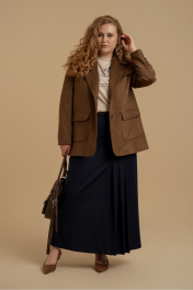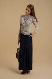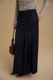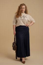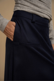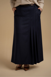 Юбка женская А-силуэта из костюмной ткани. Пояс - отрезной с застежкой на молнию. В боковых швах имеются карманы. На передней части изделия имитация прорезного кармана и складки. Юбка посажена на подкладку. Есть шлевки для ремня.