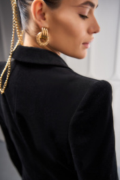 Элегантное и стильное платье-пиджак из премиального хлопкового бархата- идеальный выбор для современной и уверенной в себе женщины. Это платье, которое никогда не выйдет из моды и станет настоящим маст-хэвом в гардеробе любой модницы. Актуальный тренд весна-лето 2025 года. Модель имеет высокие подплечники, являющиеся акцентной частью платья и создавая четкую, красивую линию плеч. Платье на подкладке, полуприлегающего силуэта, длиной ниже линии бёдер, с двубортной застёжкой на одну золотую пуговицу две потайные. Воротник пиджачного типа, лацканы с заострёнными углами. Детали переда с рельефами, с наклонно расположенными боковыми прорезными карманами с клапаном и двумя обтачками и нагрудными вытачками от разрезов кармана. Спинка с рельефами от проймы до низа. Рукава двухшовные втачные, локтевые швы заканчиваются закрытыми шлицами. На шлицах по две отделочные петли и золотые пуговицы. Платье-пиджак прекрасно сочетается с брюками, дополняя Ваш гардероб разнообразием стилей и возможностей для создания уникальных образов. Это роскошное платье-пиджак подчеркнет вашу утонченность и создаст атмосферу безупречности на каждом важном мероприятии.