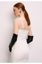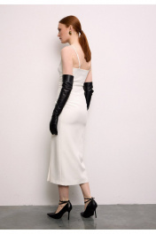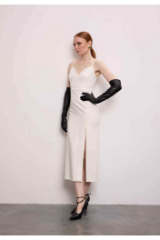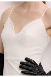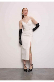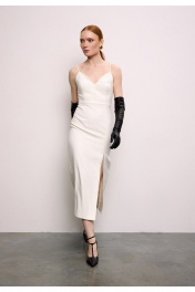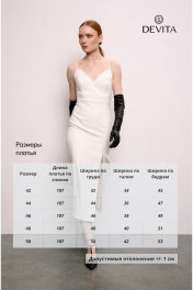 Элегантное платье из благородной смесовой вискозной ткани подчеркивает женственный силуэт, создавая утонченный образ. Модель на регулируемых тонких бретелях с фигурным декольте и потайной застежкой-молнией в боковом шве обеспечивает идеальную посадку. Платье с отрезной талией, лиф с рельефными швами и корсетными чашками для придания красивой формы груди. Юбка длиной ниже колен дополнена изящным разрезом от линии колен с аккуратной отделочной строчкой. Продуманный крой с вытачками и швами создает безупречную форму. Качественная подкладка из основного материала в лифе и подкладочной ткани в юбке обеспечивает комфорт при носке, а отлетная обработка низа завершает безупречный вид. Это платье станет идеальным выбором для торжественных мероприятий, подчеркивая вашу элегантность и стиль.