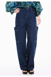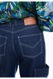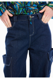 Брюки - карго из плотного хлопкового денима. Джинсы на талии, свободного кроя, длинные, с притачным поясом и шлевками. По переду застёжка на тесьму-молнию и петлю и пуговицу по поясу, два кармана с отрезными бочками, с часовым карманом в правом кармане. Спинка с отрезными кокетками и накладными карманами. По бокам, ниже уровня бедер, два накладных кармана с цельнокроенными клапанами. К джинсам идеально подходят жакеты арт. 4035 и 4036 из аналогичной ткани и цвета, для создания комплекта. Измерения готового изделия расположены в табличке с фотографиями.