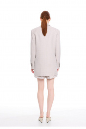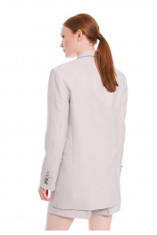 Жакет женский из костюмной смесовой твидовой ткани в мелкую клетку, на подкладке. Жакет полуприлегающего силуэта, с чёткой, слегка расширенной линией плеча. Длина до линии бёдер. Двубортная застёжка на металлические пуговицы из лимитированной итальянской коллекции Sergio Stefano. Перед жакета с вытачками пиджачного типа, горизонтально расположенными боковыми прорезными карманами с клапанами. На левой детали переда имитация верхнего прорезного кармана с листочкой. Спинка с рельефными швами от проймы до низа изделия и средним швом. Воротник пиджачного типа, с отрезной стойкой, углы воротника прямые, углы лацканов острые. Рукава двухшовные, втачные, локтевые швы заканчиваются открытыми шлицами. На шлицах по 4 отделочные петли и пуговицы. Жакет женский разбавляет и оживляет любой деловой образ, делая его утонченным, элегантным и очень стильным. К жакету идеально подходит юбка арт. 2021 из аналогичной ткани и цвета, для создания полного комплекта. Измерения готового изделия расположены в табличке с фотографиями.
