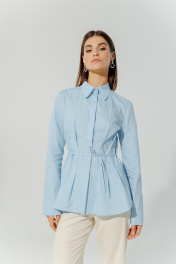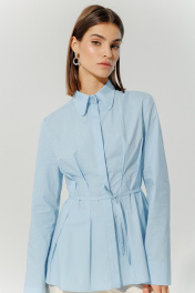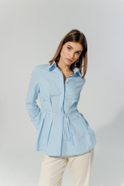 Блуза классическая из натурального хлопка с разрезами DEVITA 6013 голубой