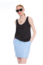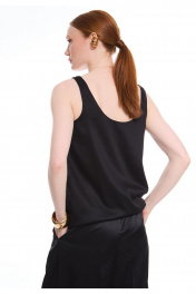 Топ на широких бретелях из премиальной вискозы. Полуприлегающий силуэт. Перед с нагрудными выточками от бокового шва. Круглая горловина. Подкладка топа из основной вискозной ткани. Впишется в Ваш гардероб как самостоятельная единица, так и дополнение к любым стильным образам.