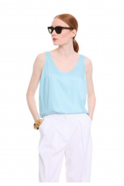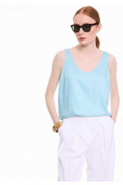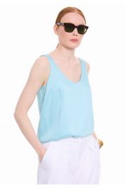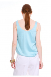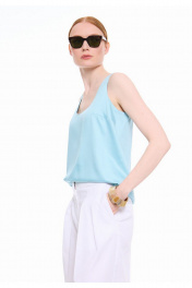 Топ на широких бретелях из премиальной вискозы. Полуприлегающий силуэт. Перед с нагрудными выточками от бокового шва. Круглая горловина. Подкладка топа из основной вискозной ткани. Впишется в Ваш гардероб как самостоятельная единица, так и дополнение к любым стильным образам.