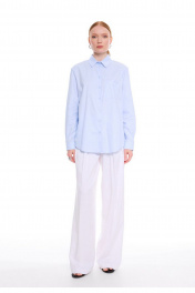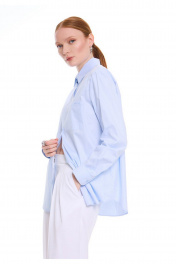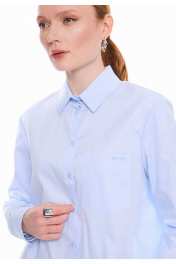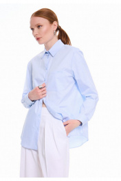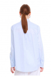 Классическая хлопковая рубашка прямого силуэта. Воротник с отрезной стойкой. Центральная застёжка на петли и пуговицы. Спинка с горизонтальной кокеткой и бантовой складкой. Рукава с притачными манжетами, застёгивающимися на петлю и пуговицу. Разрезы рукавов обработаны английской планкой, планка застёгивается на петлю и пуговицу. Накладной карман с вышитым логотипом DEVITA. Базовая модель рубашки впишется в Ваш гардероб как дополнение к любым стильным образам.