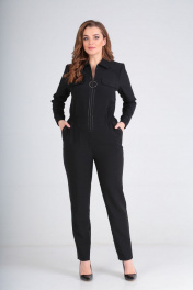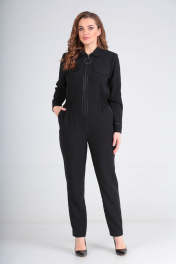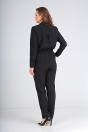 Комбинезон женский с центральной застёжкой на молнию, отрезной по линии талии. По переду нагрудные вытачки, накладные клапаны, обработаны карманы в боковых швах, пояс отрезной(частично собран на резинку).По спинке: кокетка , пояс отрезной (собран на резинку). Рукав втачной , одношовный спритапчным манжетом с застёжкой на петли и пуговицы.Воротник-отложной. В качечтве отделки используется шнур.