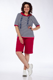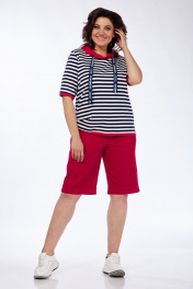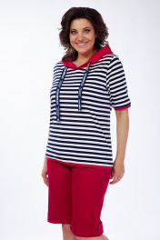 Летний комплект блузка и шорты из вискозы и хлопка Диомант 1874 бордо_узкая_полоска