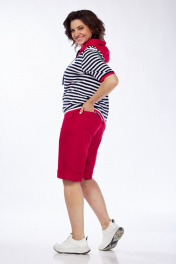 Летний комплект блузка и шорты из вискозы и хлопка Диомант 1874 бордо_узкая_полоска - фото 8