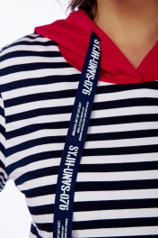 Комплект женский с шортами. Блузон полуприлегающего силуэта, рукав втачной одношовный укороченный. Капюшон,планки по низу рукава,переда и спинки из отделочной ткани. Шорты прямые, верхний срез обработан притачным поясом,застёжка на тесьму-молнию. На задней половинке накладные карманы, в боковых швах-карманы. В качестве отделки используется фурнитура и отделочная строчка.