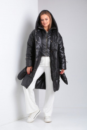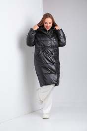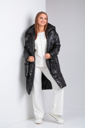 Пальто из плащёвой ткани с застежкой на кнопки и прорезными карманами Диомант 1925 черный