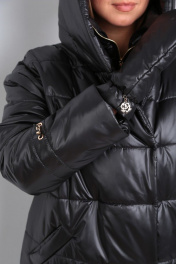 Пальто женское с центральной застёжкой на кнопки. Линия плеча спущенная, рукав втачной одношовный с кулисой по низу. По переду прорезные карманы с листочкой с втачными краями. Капюшон цельнокроенный с центральной частью. В качестве отделки испоьзуются детали. Варежки съёмные манишка с центральной с центральной застёжкой на тесьму-молнию (втачная деталь). Фурнитура под золото!!!