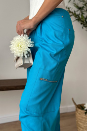 Брюки-карго расширенные книзу с карманами и шлевками Dilana VIP 1997 голубой