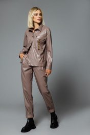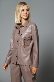 Блуза из экокожи с накладным карманом и разрезами DILIA 0508 бежевый