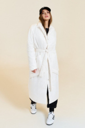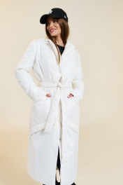 Пальто из плащевой ткани с утеплителем и съемным поясом DILIA 0651-1 кремовый