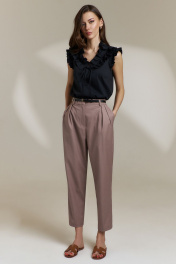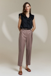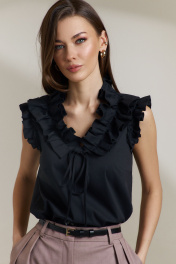 Блузка женская прямого силуэта. Оформлена настрочными рюшами по проймам и V-образной горловине на обтачке. Украшена шнурками-завязкой из основной ткани.