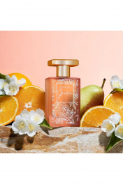 Это красота прекрасных садов, где расцветает нежный жасмин и мягкий нероли, переливаясь ароматами сочных апельсинов. Этот аромат переносит нас в живописное место с голубым бесконечным небом, где природа переливается яркими ароматами и богатством цветов. Здесь, в самом живописном уголке — великолепно ухоженные цветники усыпаны ароматными цветами, а густые ряды апельсиновых деревьев добавляют игривой ноты, оранжевого цвета и свежести. Теплые солнечные дни и прохладные вечера раскрывают идеальную атмосферу, отражая красоту каждого аромата в этом саду. и первой любви, и её стремление к красоте в каждом мгновении. Начальные ноты - Бергамот, Груша, Апельсин, Нероли Сердечные ноты - Жасмин, Цветок апельсина, Розовый перец Шлейфовые ноты - Сухая древесина, Белый мускус, Амбра, Ваниль