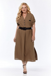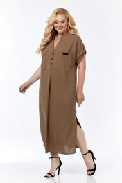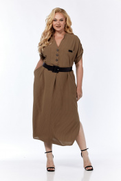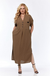 Коричневое свободное платье с нагрудными карманами на пуговицах Диомант 1980 коричневый