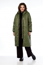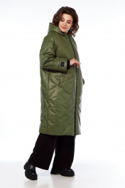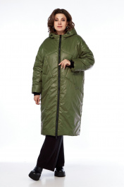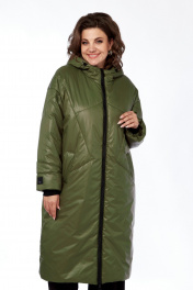 Пальто утепленное демисезонное на молнии с капюшоном Диомант 2024 олива
