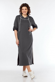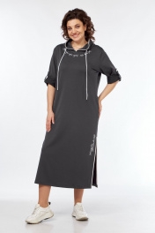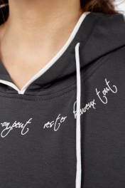 Серое платье с капюшоном из трикотажа с принтом для комфорта Диомант 2032 графит