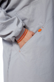 Плащ женский свободного кроя с центральной застежкой на "молнию". Спинка сосредним швом и тремя фигурными подрезами. Перед так же с тремя подрезами. В швах нижнего подреза обработаны карманы. Рукав цельнокройный с довязом по низу. Воротник-капюшон с подрезами и кулисой со шнуром. По низу плаща обработаны кулиса со шнуром. Над правым карманом металлическая нашивка. Внешний вид фурнитуры может отличаться от заявленного на фото.