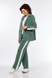 Комплект из трикотажных брюк, жакета и майки в зеленом стиле Диомант 2043 зелень