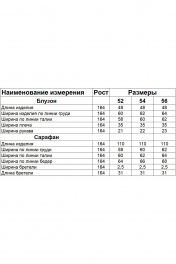 Комплект женский состоит из блузона и сарафана. Сарафан полуприлегающего силуэта, на бретелях, со средним швом на спинке, который заканчивается разрезом. По переду нагрудные вытачки, в боковых швах обработаны карманы. Блузон свободного кроя со спущенной линией плеча. Без застежки. Воротник стояче-отложной с отрезной стойкой. Внутренние срезы окантованы.