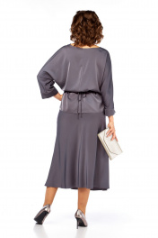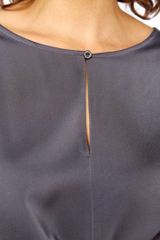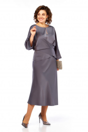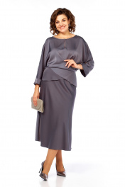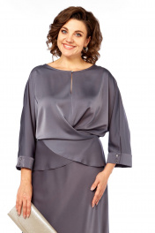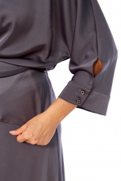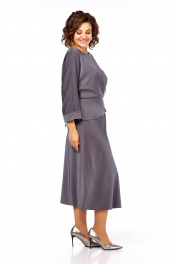 Костюм женский с юбкой. Блузон с цельнокроенным рукавом. По переду средний шов, по низу разрез с завязками. По горловине вырез, фикисруется петлей и пуговицей. По спинке средний шов. По боковым швам разрезы. По низу рукава разрезы с манжетом с застежкой на петли и пуговицы. Юбка расширенная к низу. Верхний срез обработан резинкой. В качестве отделки используется фурнитура. Длина по спинке 64 см, ширина плеча+длина рукава 60 см. Длина юбки 87 см.