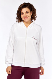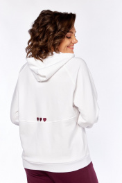 Комплект брючный.Кофта свободного кроя с центральной застежкой на тесьму-молнию. Рукав покроя реглан с притачным манжетом по низу (довяз). По переду и спинке кокетки. Капюшон со средним швом. По низу изделия отделочный пояс (довяз). В качестве отделки используется вышивка. Брюки широкие, верхний срез обработан поясом с резинкой. В боковых швах обработаны карманы. Длина по спинке 64 см, ширина плеча+ длина рукава 72 см. Длина брюк 112 см.