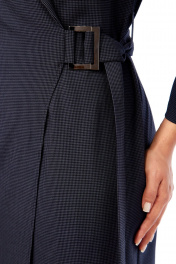 Платье женское полуприлегающего силуэта с запахом и застежкой на пряжку и пояс. Спинка со средним швом и рельефами от проймы до линии бедер. Перед с рельефами от проймы до линии бедер и цельнокроынйм воротником-шаль. Рукав втачной одношовный с вытачкой от низа до локтя. Внутри запах фиксируется на хлястик с петлями и пуговицами в области талии. Фурнитура может отличаться от заявленной на фото. Длина по спинке 104 см, длина рукава 52 см.