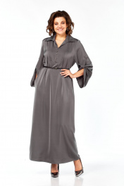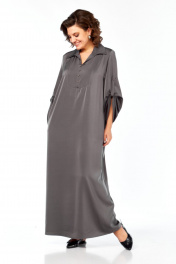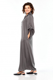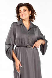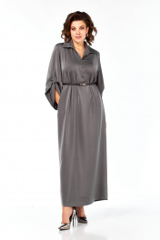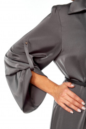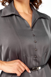 Платье женское длинное, полуприлегающего силуэта. Перед с притачной манишкой и 5-ю пуговицами. Воротник отложной на стойке. Рукав втачной одношовный. Длина рукава регулируется хлястиком на пуговицу. Фурнитура может отличаться от заявленной на фото. В комплекте ремень. Длина по спинке 145 см, длина рукава 59 см