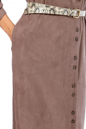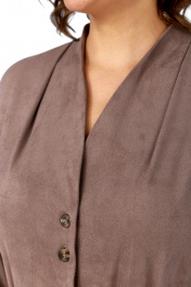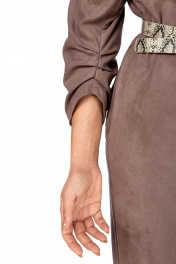Платье женское поплуприлегающего силуэта с застежкой на петли и пуговицы. Спинка со средним швом. Полочка с мягкой складкой у горловины. Боковые карманы обработаны в швах с частично настроченной мешковиной. Рукав со спушенной линией плеча, втачной, одношовный с 3-мя мягкими складками снизу. Воротник-стойка цельнокройная с полочкой. В комплекте ремень из эко-кожи. Фурнитура может отличаться от заявленной на фото. Длина по спинке 119 см. Длина рукава 45 см. Наименование измерения Рост Размеры 52 54 56 Длина изделия 164 119 119 119 Ширина изделия по линии груди 164 55 57 59 Ширина изделия 164 по линии талии 54 56 58 Ширина изделия по линии бёдер 164 58 60 62 Ширина спины 164 45 45 45 Ширина плеча 164 20 20 20 Длина рукава 164 45 45 45 Ширина рукава под проймой 164 21 22 23