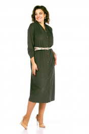 Платье женское поплуприлегающего силуэта с застежкой на петли и пуговицы. Спинка со средним швом. Полочка с мягкой складкой у горловины. Боковые карманы обработаны в швах с частично настроченной мешковиной. Рукав со спушенной линией плеча, втачной, одношовный с 3-мя мягкими складками снизу. Воротник-стойка цельнокройная с полочкой. В комплекте ремень из эко-кожи. Фурнитура может отличаться от заявленной на фото. Длина по спинке 119 см. Длина рукава 45 см. Наименование измерения Рост Размеры 52 54 56 Длина изделия 164 119 119 119 Ширина изделия по линии груди 164 55 57 59 Ширина изделия 164 по линии талии 54 56 58 Ширина изделия по линии бёдер 164 58 60 62 Ширина спины 164 45 45 45 Ширина плеча 164 20 20 20 Длина рукава 164 45 45 45 Ширина рукава под проймой 164 21 22 23