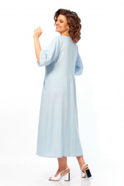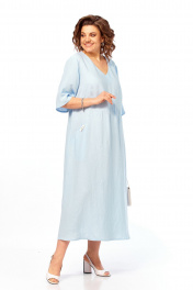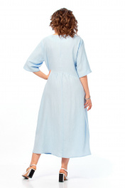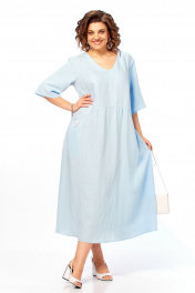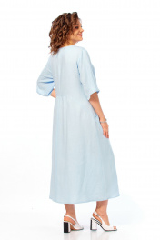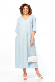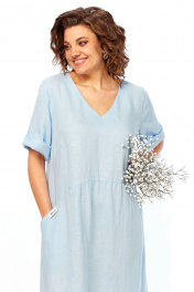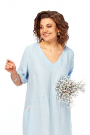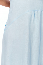 Платье женское свободного кроя . Спинка со средним швом и полукруглым подрезом в области талии. Перед с V-образной горловиной и полукруглым подрезом в области талии. В нижней части переда и спинки сборка в центральной части . Боковые карманы обработаны в шве подреза переда. Правый карман украшен нашивкой. Рукав втачной одношовный длиной до локтя. Фурнитура может отличаться от заявленной на фото. Длина по спинке 125 см, длина рукава 35 см.