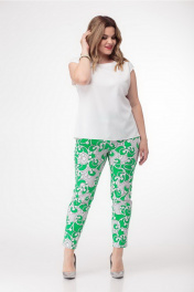 Брюки женские, зауженные к низу, длинной 7/8. На передних половинках брюк закругленные подрезы имитирующие вход в карман. Застежка спереди на тесьму – молнию. Верхний срез брюк обработан притачным поясом, застегивающимся на пуговицу.