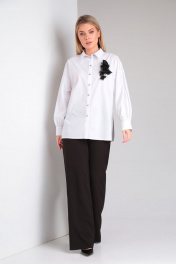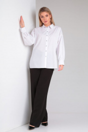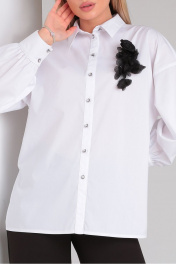 Универсальная, стильная, модная блузка свободного силуэта, воротник со стойкой, рукав с манжетой на спущенной по низу сборка, спинка на кокетке со складкой, в боковых швах разрезы. Застежка на петли, пуговицы по планке. Съемное украшение в комплекте. параметры 42 44 46 48 50 52 54 Блузка обхват груди 110 110 110 114 114 122 122 обхват талии 112 112 112 116 116 123 123 обхват бедер 113 113 113 117 117 126 126 Длина по спинке 71 71 71 71 71 72 72 длина рукава от горловины 70 70 70 71 71 72.5 72.5
