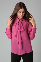 Блузка женская, класическая, рубашечного кроя из шифона. Застежка петли-пуговицы.Спинка прямая.Воротник на стойке со съемным бантом. Рукав втачной, длинный на манжете с застежкой на петлю пуговицу. длина изделия -68 см длина рукава - 59см параметры 40 42 44 46 обхват груди 108 108 112 обхват талии 112 112 116 обхват бедер 116 116 120 обхват рукава 40 40 42