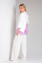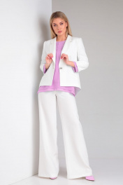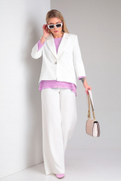 Деловой костюм с шифоновой блузкой и имитацией запаха DOGGI 2904 молочный+барби