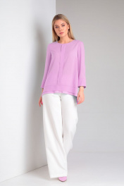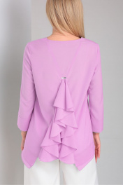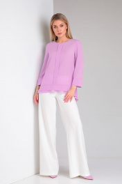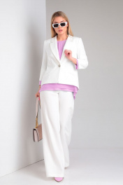 Элегантный брючный костюм в комплекте с шифоновой блузкой.Жакет полуприлегающего силуэта с воротником и лацканами классической формы, застежкой на 1 пуговицу. Особое внимание заслуживает экстравагантная спинка с имитацией запаха и серебристыми металлическими акцентами в виде цепочек, соединяющих две половинки отлетной спинки.Брюки прямого покроя расширены от линии бедра. Комфортная посадка брюк и подчеркивающий фигуру крой сделает их любимым предметом вашего гардероба.Костюм выполнен из материала модных цветов, не требующего особого ухода, пластичен и удобен в носке.Блузка-туника нежного молочного пастельного оттенка с шифоновыми рукавами. Блуза очаровывает своим красивым непринужденным полуприлегающим силуэтом, фигурной линией низа, и конечно же спинкой.Фантазийная спинка с шифоновыми вставками и воланами, красиво драпирующимися и являющимися одним из популярных трендов, шикарно смотрится как самостоятельно, так и в сочетании с эффектным разрезом на жакете. Жакет длина по спинке от точки основания шеи-67см, длина по полочке от точки основания шеи-59см, Длина рукава -46см Брюки Длина по бок. Шву-110 Блузка длина по спинке 42/44/46/48-64см,50р-65см длина рукава-49см параметры 42 44 46 48 50 Жакет обхват груди 88 92 96 100 104 обхват талии 90 94 98 102 106 обхват бедер 100 104 108 112 116 Брюки обхват талии 72 76 80 84 88 обхват бедер 92 96 100 104 108 ширина по низу 30.4 31 31.4 32 32.4 Блуза обхват груди 90 94 98 102 106 обхват бедер 98 102 106 110 114 длина по полочке 55 55 55 55 56