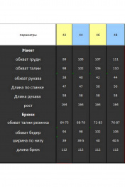 Ультрамодный костюм из хлопкового джинса с двойными отстрочками. Жакет укороченный, свободного силуэта с накладными карманами. Рукав втачной, расширенный к низу с декоративной локтевой накладкой и хлястиком с пробивными пуговицами. Воротник отложной, с маленьуим лацканом, застежка на петли и прбивные пуговицы. Брюки свободного силуэта на поясе с эластичной лентой и шлевками. Брюки высокой посадки, расширенные от бедра, с четырмя накладными карманами, застежка- молния спереди.