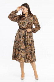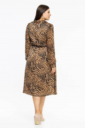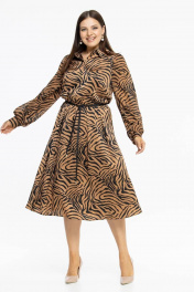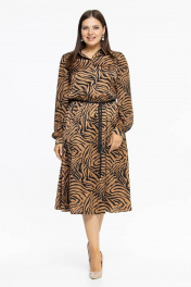 Платье-рубашка из шёлка с принтом и поясом Effect-Style 820 чёрно-рыжий