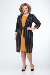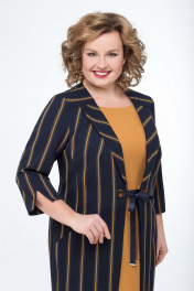 Стильное женское платье полуприлегающего силуэта, с имитацией комплекта из платья и кардигана. Спинка с талиевыми выточками, со средним швом и застежкой на потайную молнию. Перед с отлетными деталями, в области линии талии находятся люверсы, в которые протянут поясок. Модель удобная и практичная, отлично подойдет как для праздника, так и для ежедневной носки. Длина платья 107 см. Длина рукава 46 см